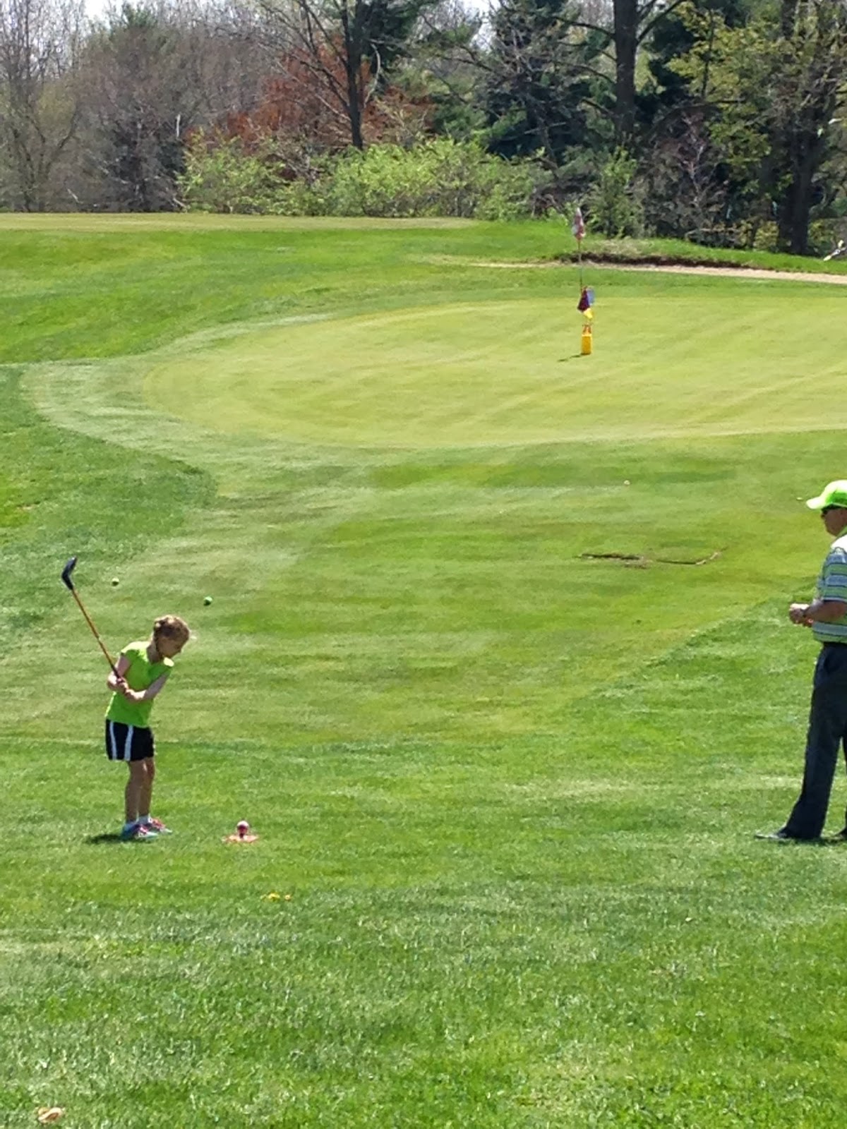 Another drill to try and teach the kids how to run while cradling the ball/stick. Megan did really well with this except for those few times she dropped the ball completely by accident.